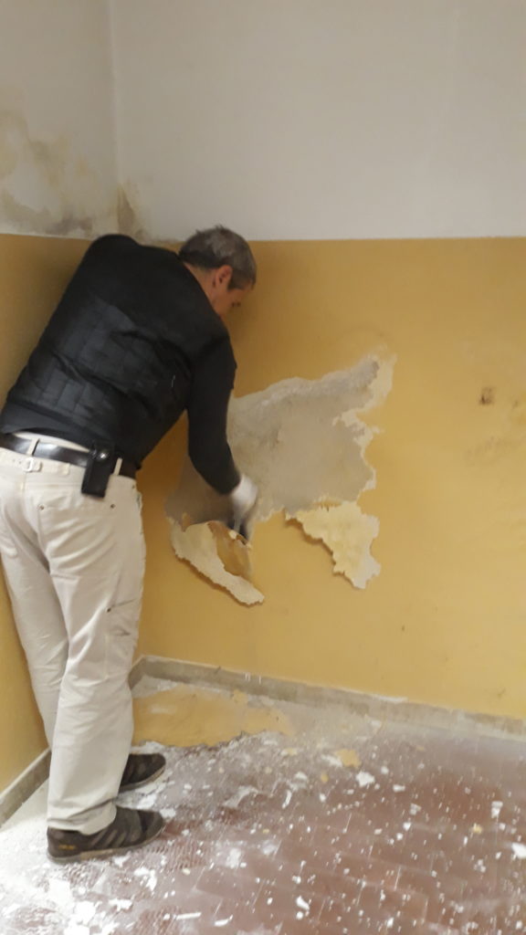 Le foto documentano la situazione della stanza e l’impegno che i genitori hanno profuso per rimetterla a nuovo.