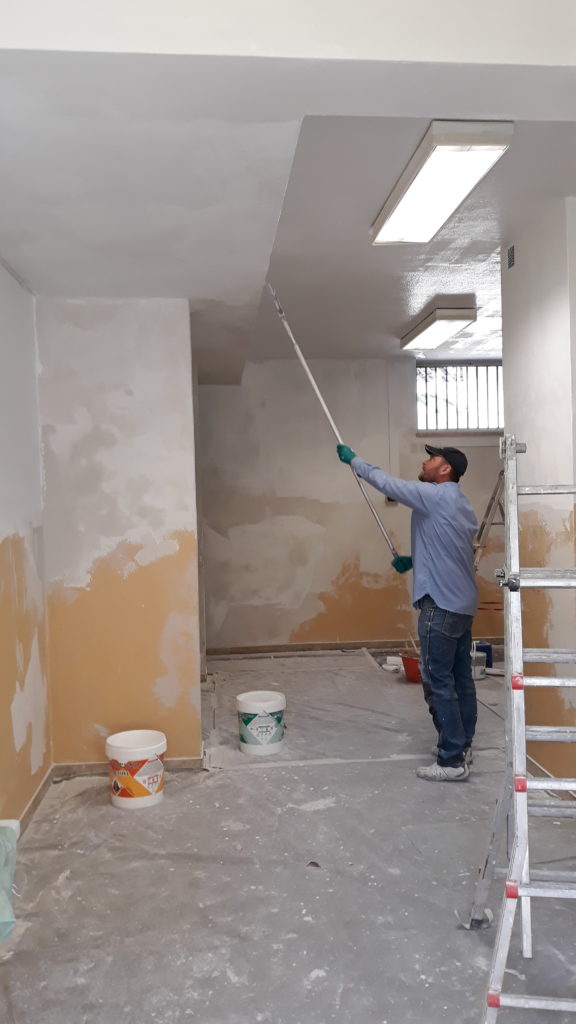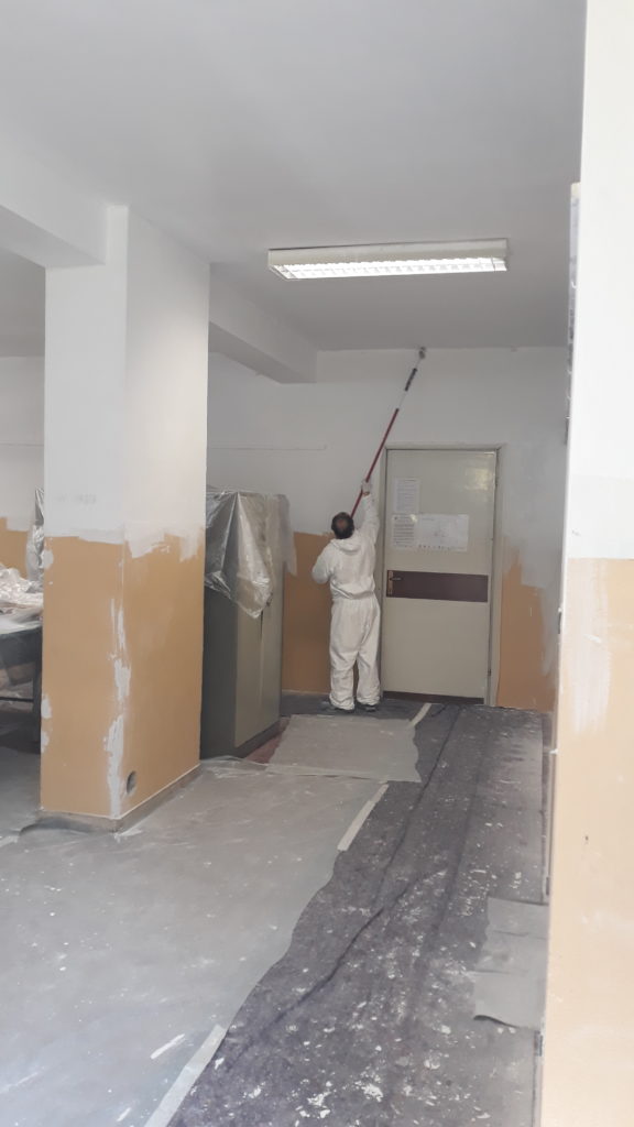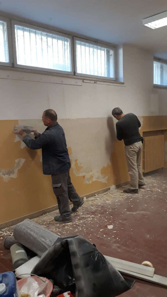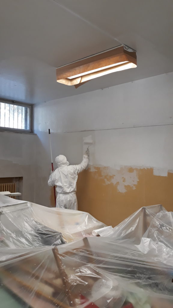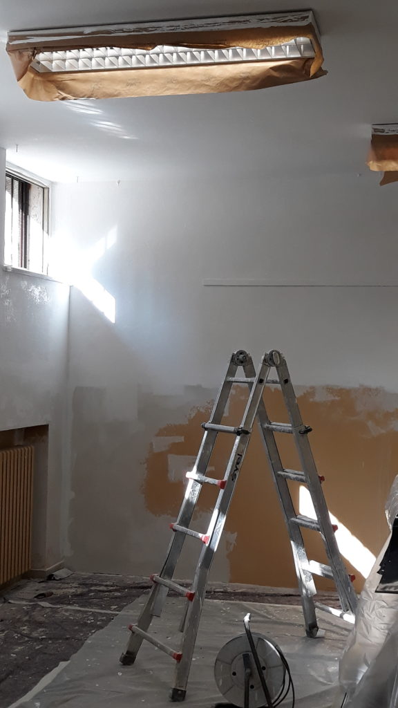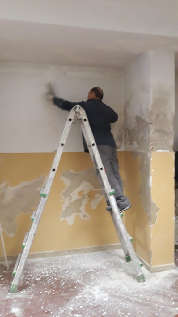 Sono iniziati i lavori di sistemazione dell’aula di arte delle scuole medie Battisti. E’ già stata pitturata di bianco la parte più alta dell’aula, mentre sabato 6 aprile si continuerà con la pittura della parte sottostante.